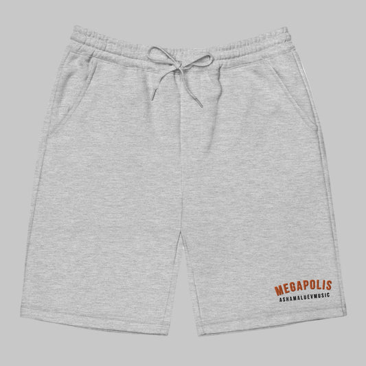 Men's fleece shorts with embroidery 'Force' and 'AShamaluevMusic' logo on the left leg. The men’s fleece shorts are soft, comfy, and great for lounging indoors or going out. The shorts have 1 back pocket, 2 jersey-lined hand pockets, and an elastic waistband with a shoestring drawcord.